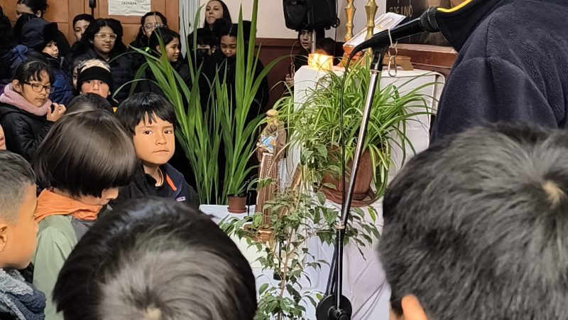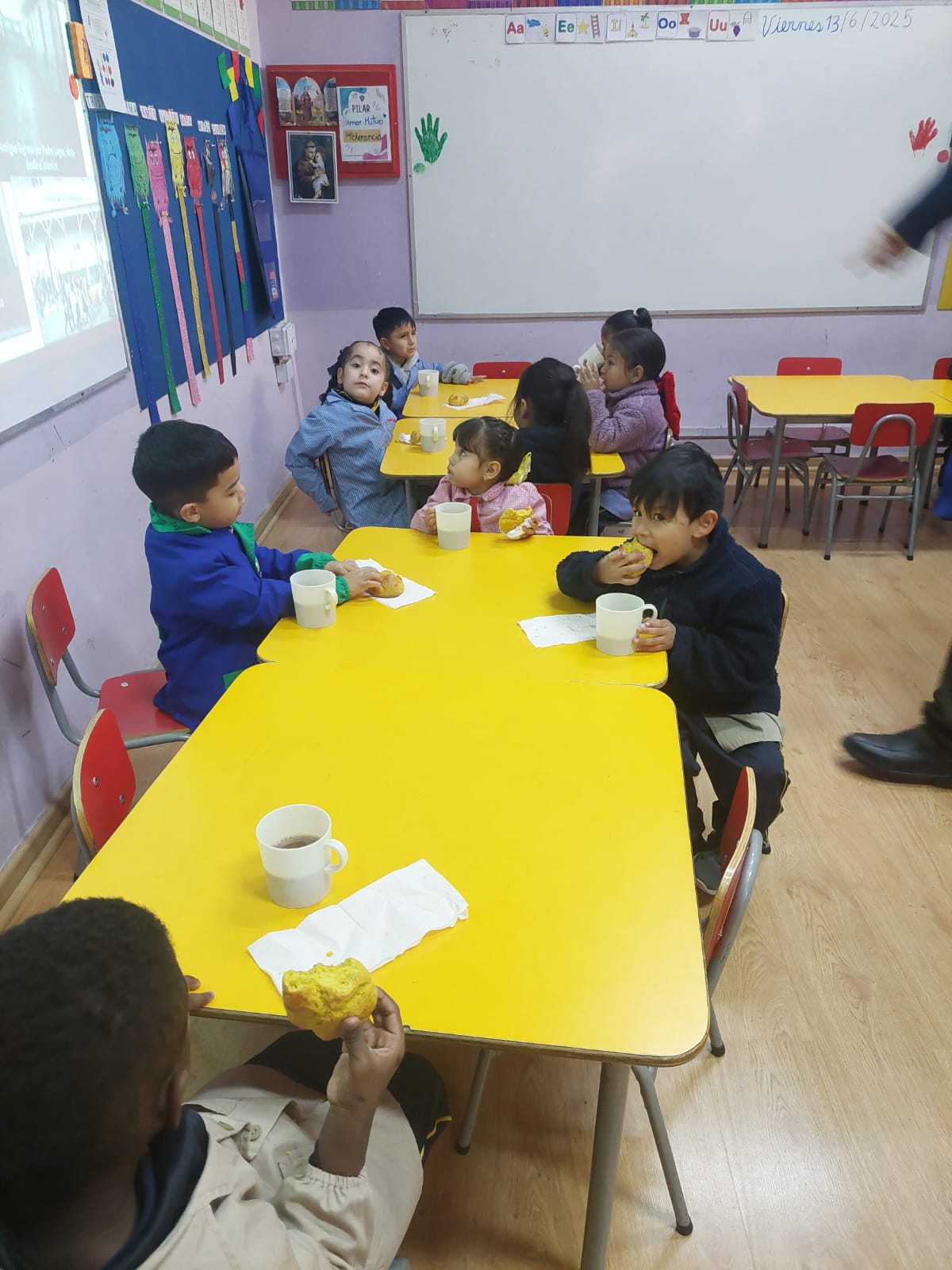Uno de los momentos más esperados fue el compartir de leche chocolatada y pan dulce en cada curso, acompañado de una pequeña historia sobre San Antonio de Padua, donde los estudiantes pudieron conocer más sobre la importancia de este santo en la tradición cristiana.