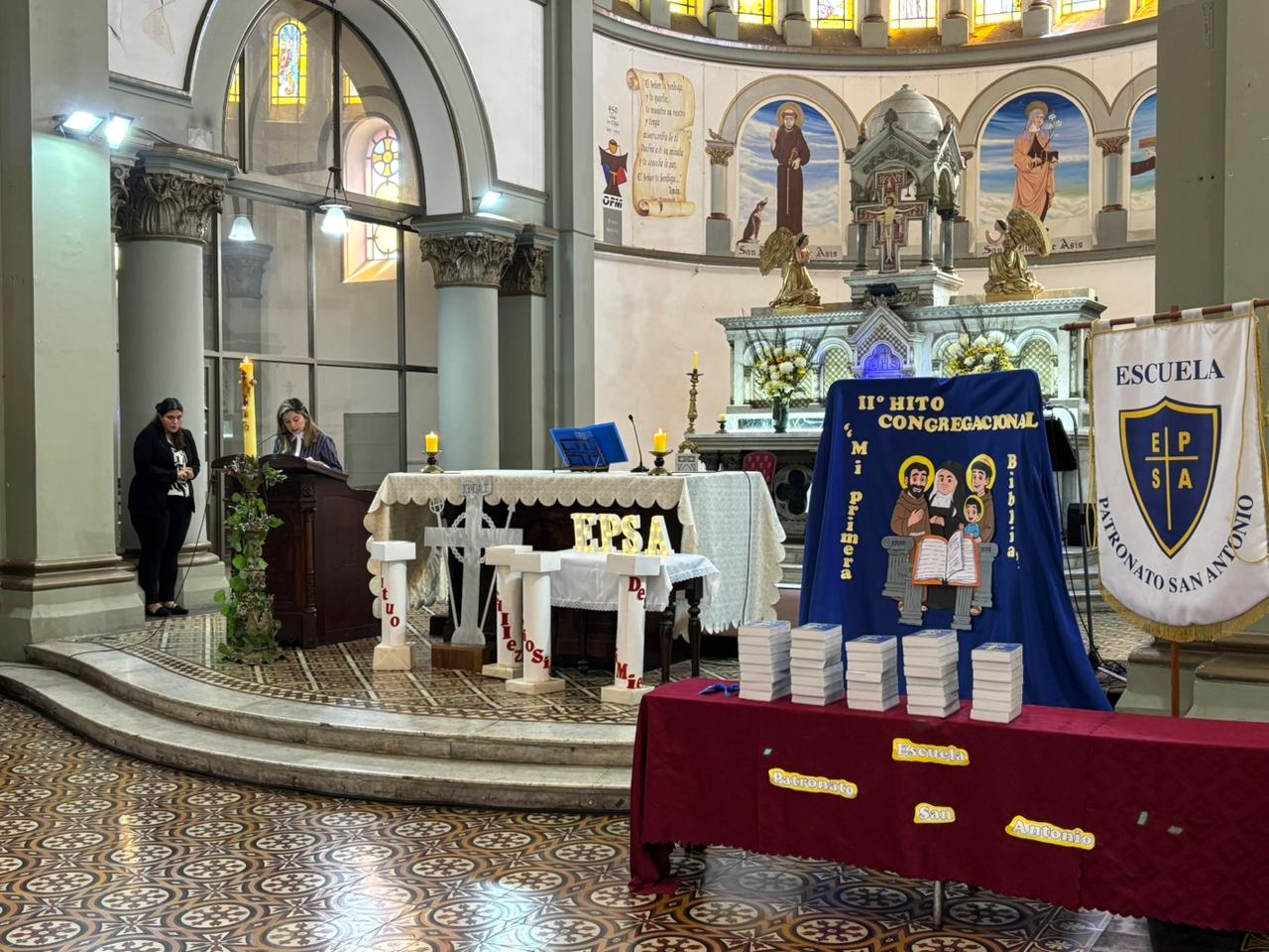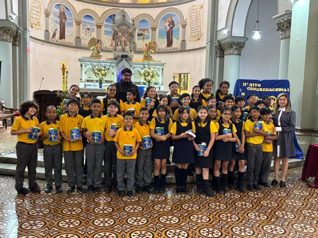 El Hermano Miguel, capellán de nuestra escuela, junto a la Hermana Norma Martínez —representante de la Congregación de las Hermanas Franciscanas Penitentes Recolectinas— fueron los encargados de entregar la Biblia a cada estudiante, acompañados por sus apoderados.
