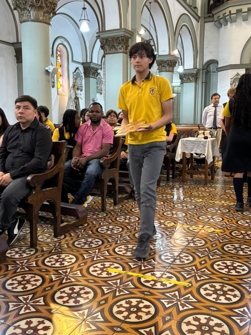 La entrega fue realizada por la directora Paola Palma y la hermana franciscana Norma Martínez. Uno a uno, los estudiantes se acercaron mientras se proclamaba la perícopa evangélica: “Jesús subió a la montaña y llamó a…”