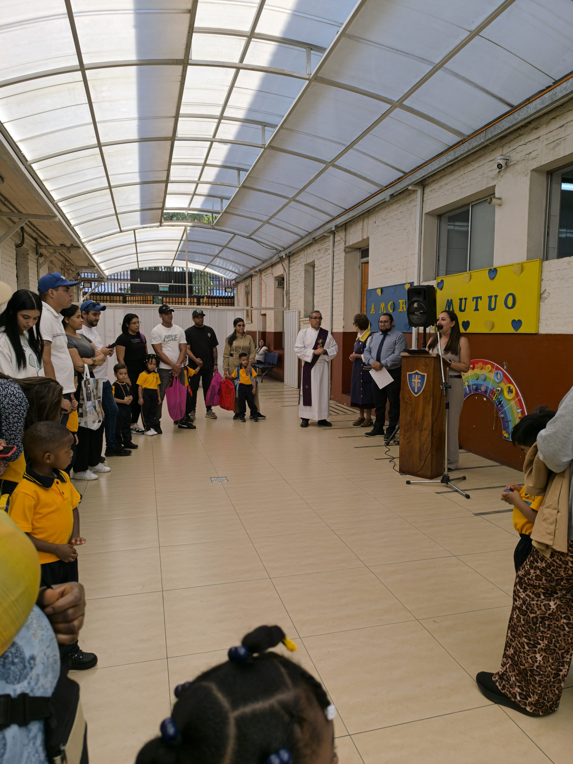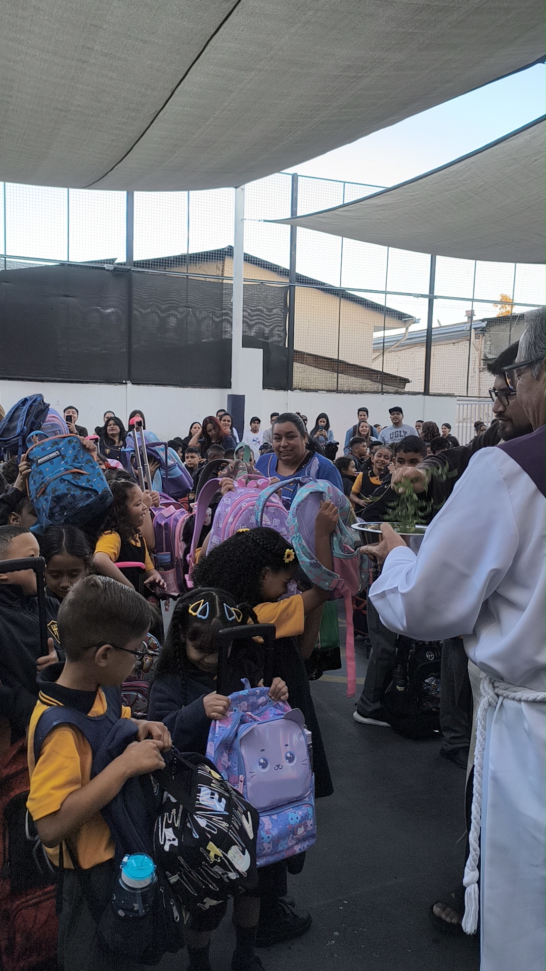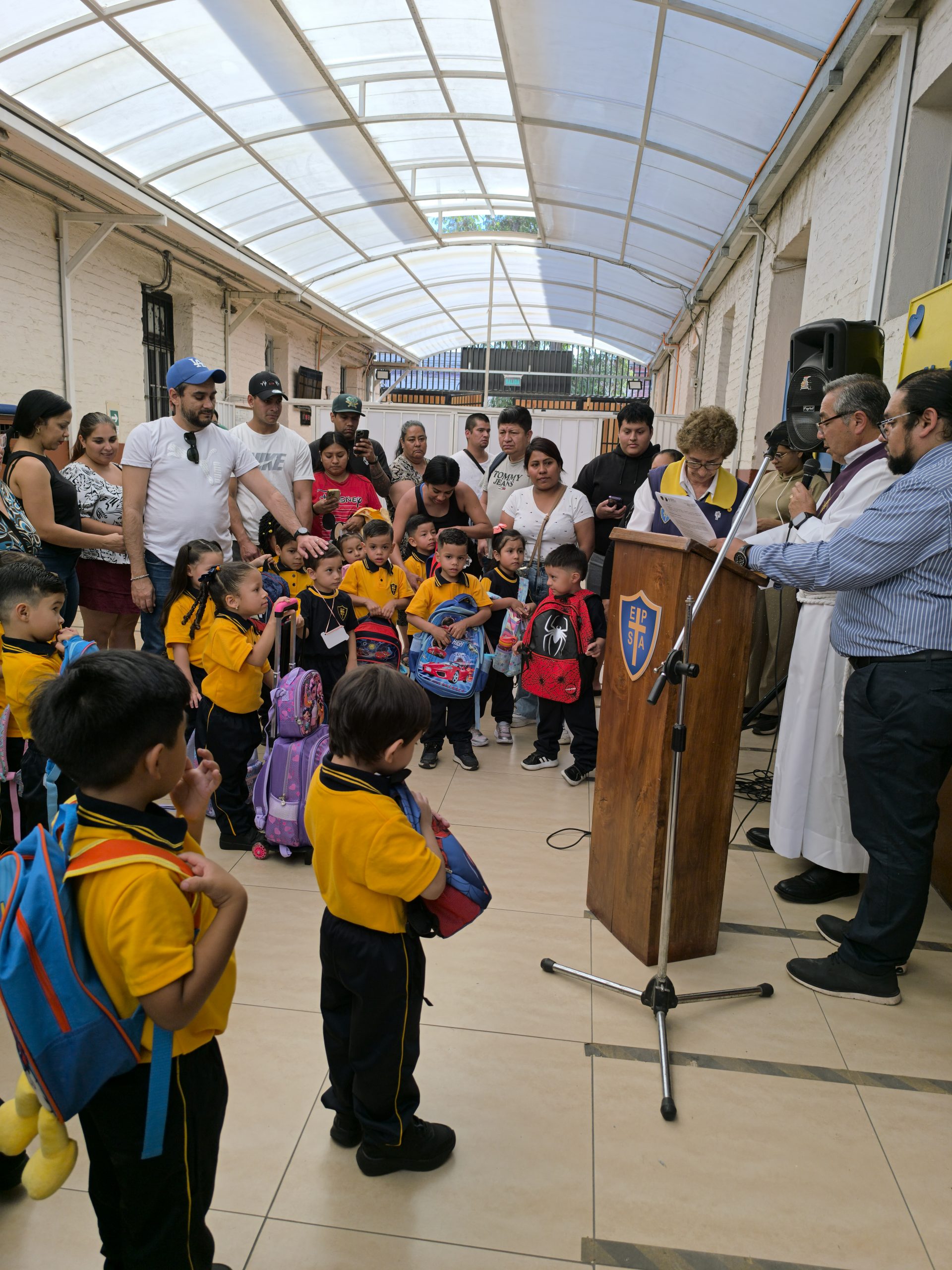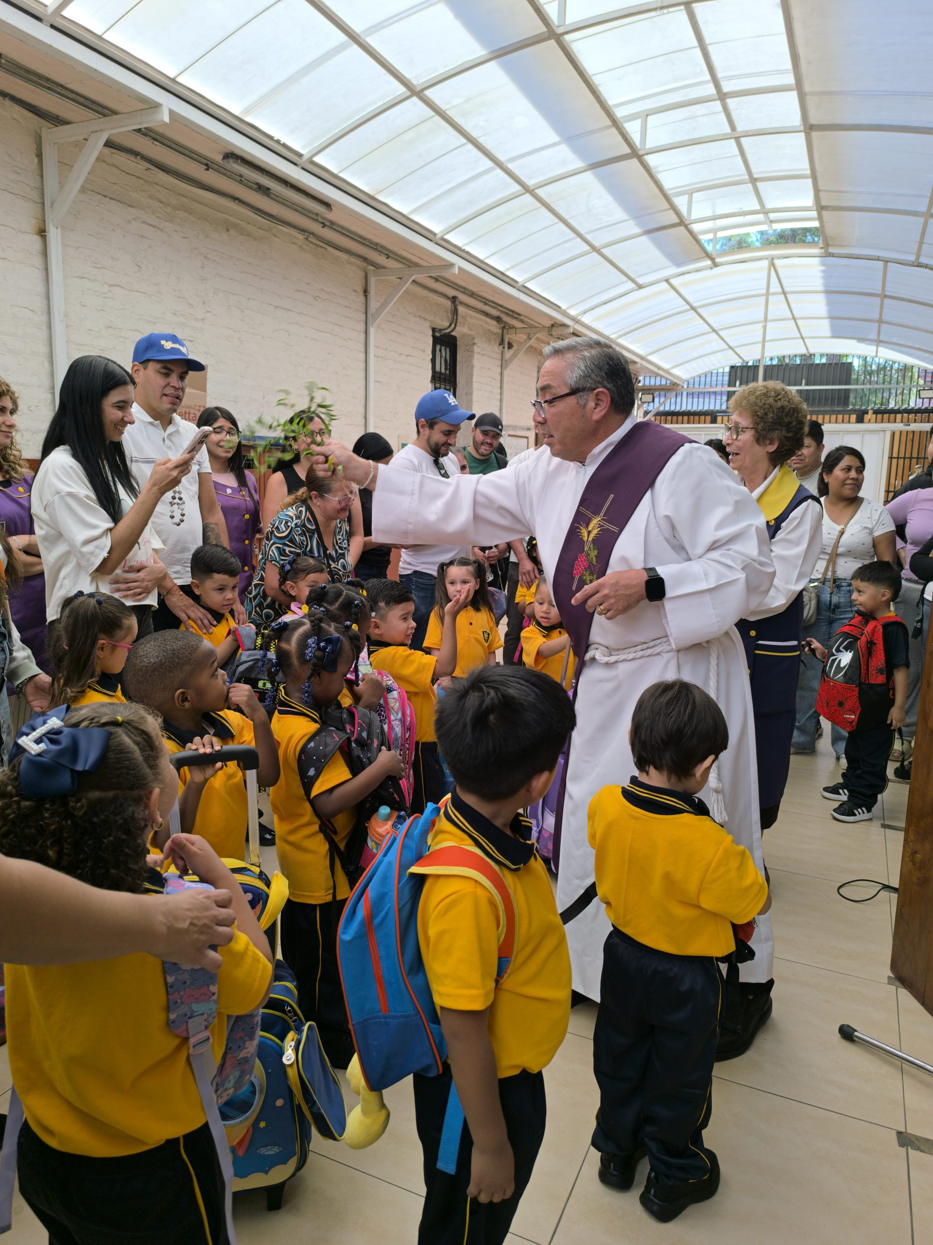 Más tarde, en una instancia especialmente tierna y emotiva, se dio la bienvenida a los niños de prekínder, quienes acompañados de sus padres y apoderados participaron de este momento único en su vida escolar. Ellos también fueron parte de la oración y recibieron la bendición de sus pequeñas mochilas, cargadas de alegría y curiosidad.