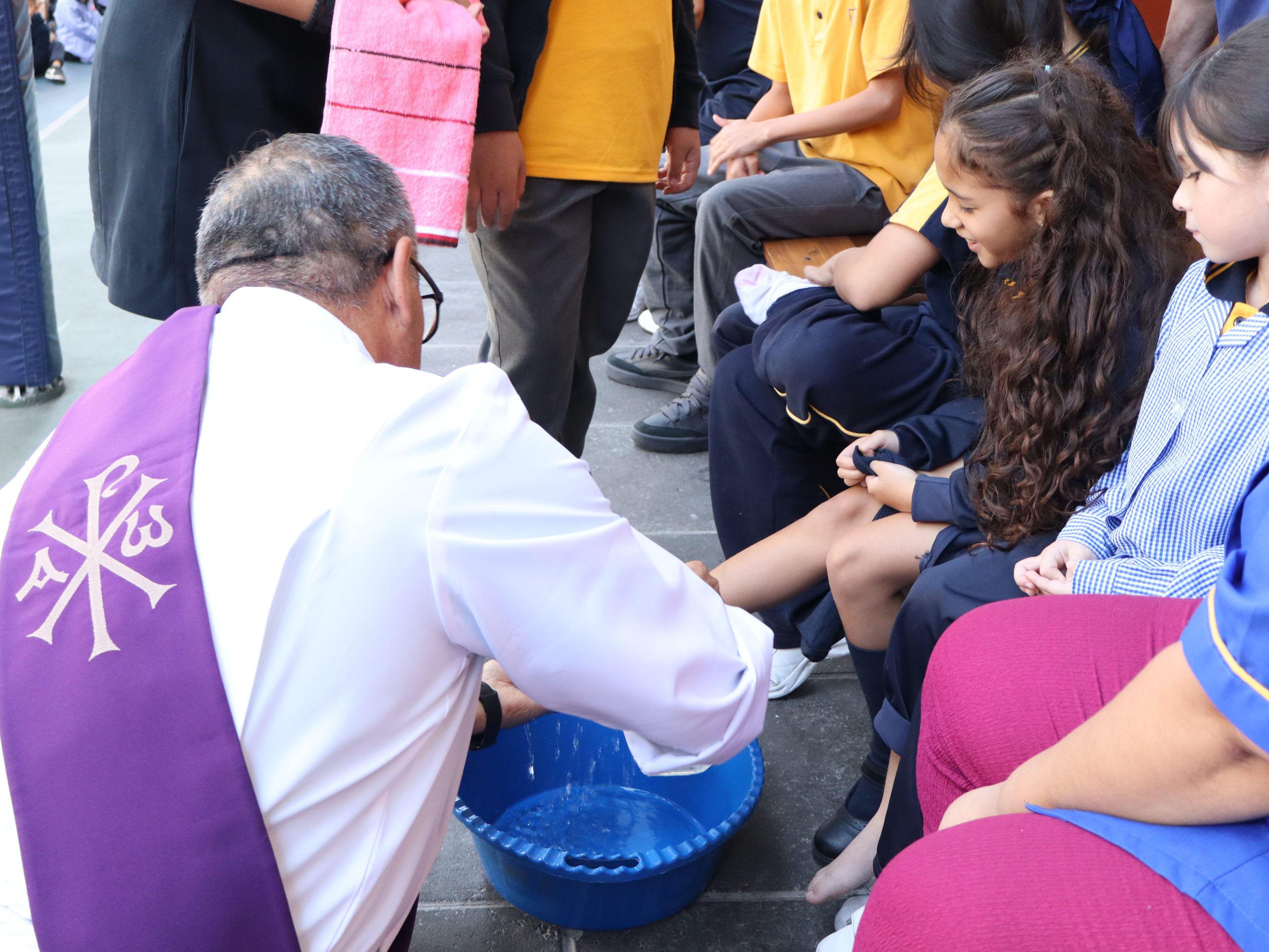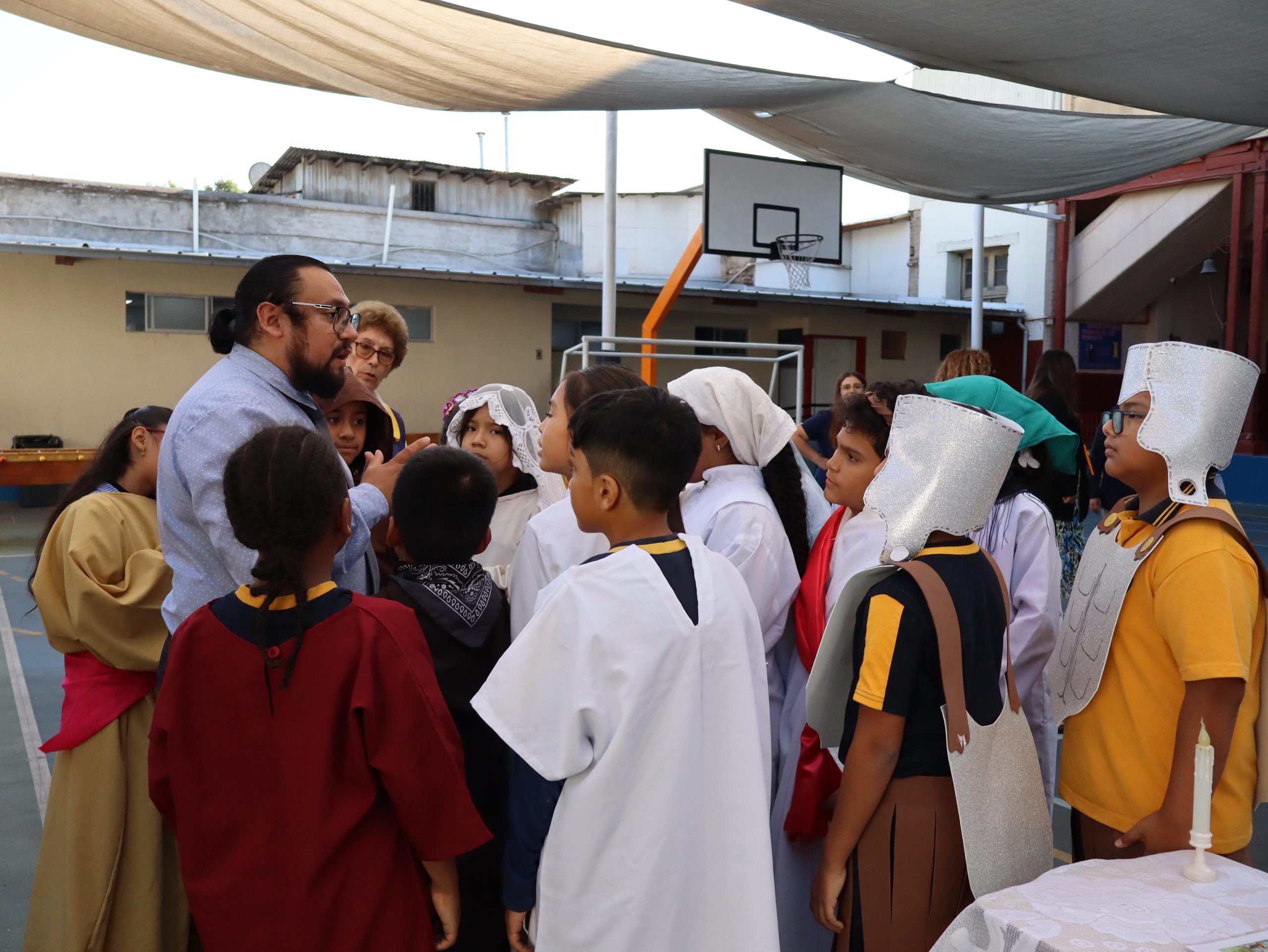 El jueves santo, la comunidad revivió el gesto de Jesús al lavar los pies de sus discípulos. La ceremonia fue encabezada por Don Juan Pereira, Diácono Permanente de la Iglesia Católica, quien realizó el signo hacia los estudiantes, un funcionario y un apoderado. La jornada concluyó con el compartir de jugo y pan en cada curso, desde prekínder a kínder, acompañado por profesores jefes, asistentes de la educación y padrinos, como símbolo de fraternidad.