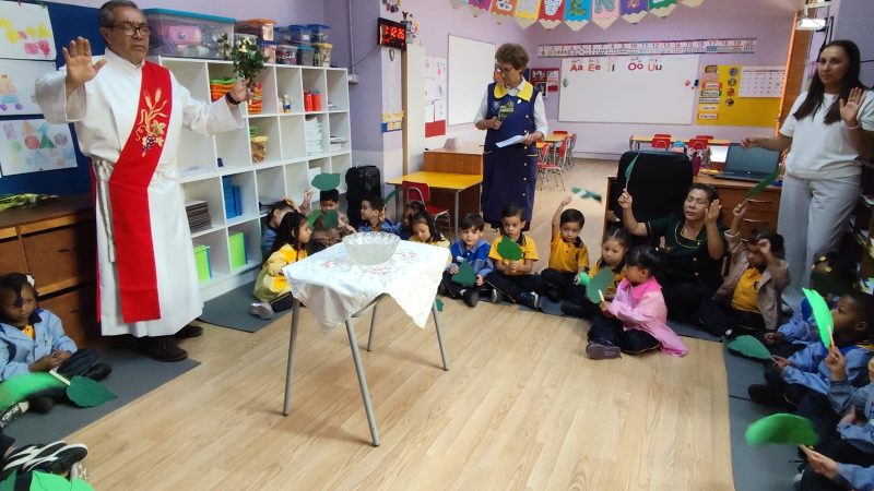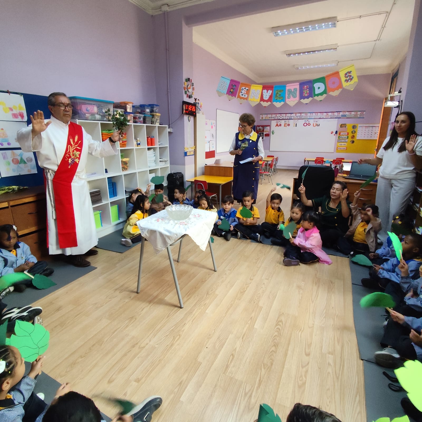 El lunes santo, los más pequeños de párvulo y los estudiantes de la básica recibieron con alegría la bendición de ramos, acompañada de una pequeña representación de la entrada de Jesús a Jerusalén, protagonizada por alumnos voluntarios que participaron con mucho compromiso.
